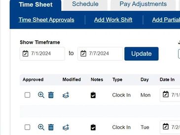 With Xacttime/XT Blu, employees can be given web-access, giving them access to their own home page. From there, the employee can clock in or out, view their time, send time off requests, and view their benefit balances (if benefits are tracked through Xacttime/XT Blu).